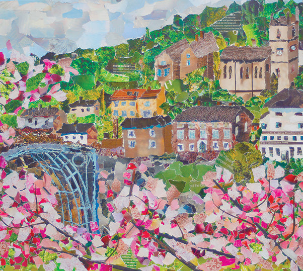 Limited edition print of 100 taken from the original torn paper collage of Spring in Ironbridge, World Heritage Site in sunny Shropshire.