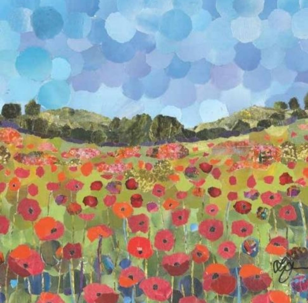 Limited edition print of 100 taken from the original torn paper collage of a Shropshire Poppy Field.