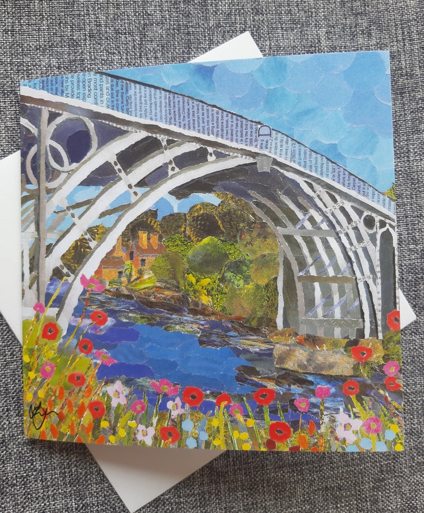 A blank greeting card of Summer in Ironbridge taken from an original paper collage. This comes with a white envelope.